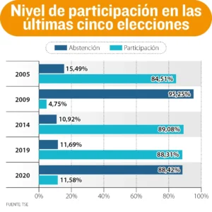 Según las previsiones del TSE, hay 7,9 millones de ciudadanos están habilitados emitir su voto, mientras que más de 409.000 quedaron inhabilitados. Además, el estimado de habilitados para votar en el exterior es de 370.000 ciudadanos.
