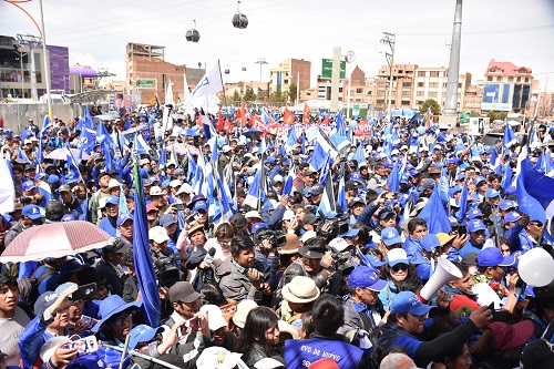 22 de septiembre (Urgente.bo).- El presidente Evo Morales encabezó el domingo una multitudinaria caminata de personas, vestidas con poleras y gorras azules, que recorrió distintas zonas de la ciudad de El Alto, desde la ex Tranca de Senkata hasta ciudad Satélite, y le dio su respaldo rumbo a las elecciones del 20 de octubre. En el acto central, el postulante a la reelección acusó a sus rivales de mentir, cuando señalan que no privatizarán las empresas del Estado.