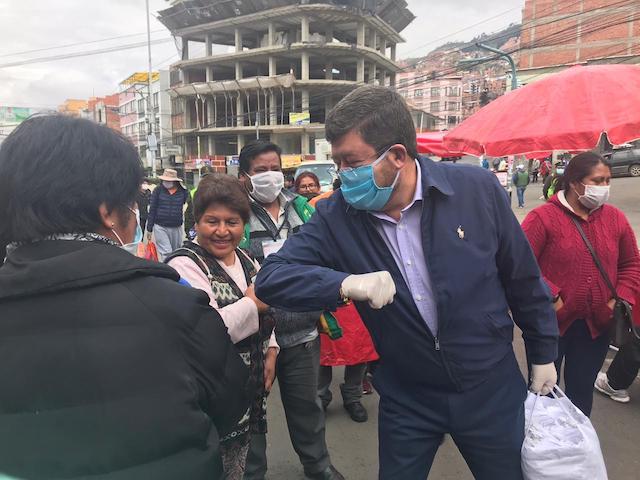 La Paz, 8 de abril (Urgente.bo).- Samuel Doria Medina entregó 6.000 barbijos, realizados a los vendedores de los mercados de la ciudad de La Paz, lo cuales son el sector de la población que ayuda a la provisión de alimentos de la población.