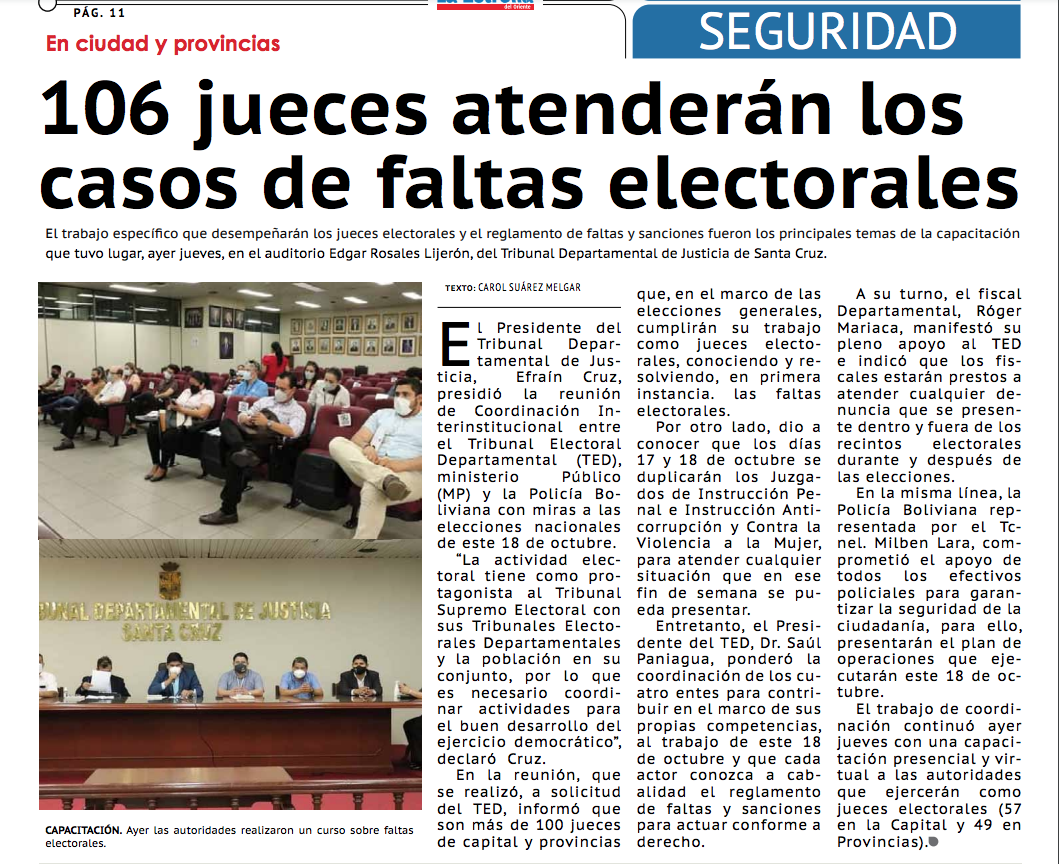 (MP) y la Policía Boliviana con miras a las