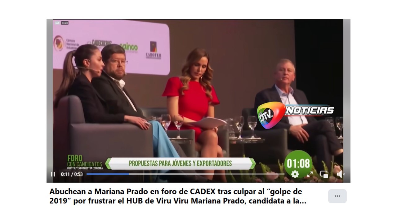 Abuchean a Mariana Prado en foro de CADEX tras culpar al “golpe de 2019” por frustrar el HUB de Viru Viru