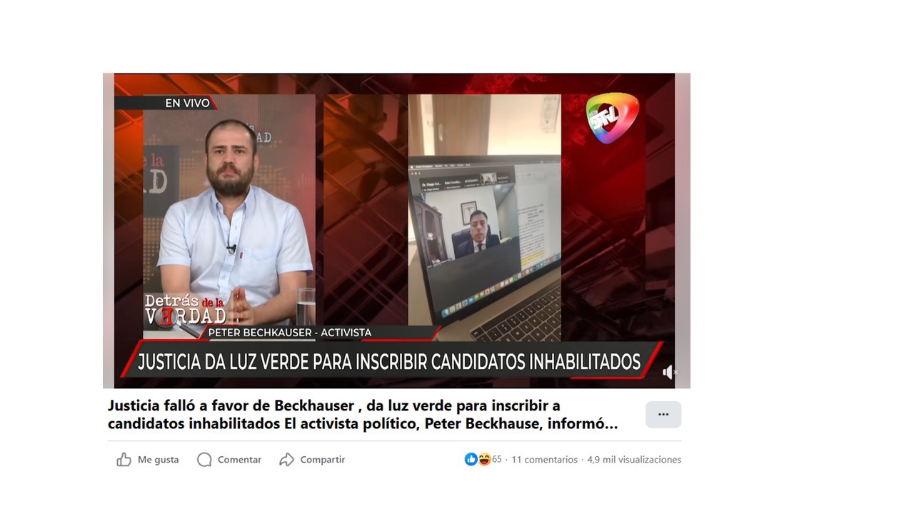 Justicia falló a favor de Beckhauser , da luz verde para inscribir a candidatos inhabilitados