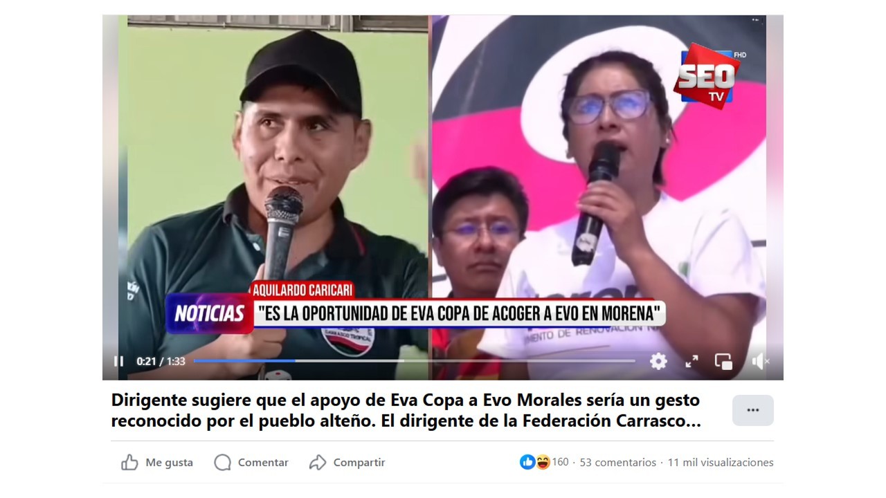 Dirigente sugiere que el apoyo de Eva Copa a Evo Morales sería un gesto reconocido por el pueblo alteño.