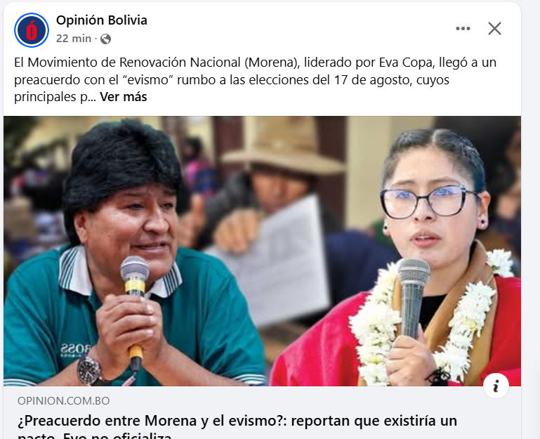 El Movimiento de Renovación Nacional (Morena), liderado por Eva Copa, llegó a un preacuerdo con el “evismo”