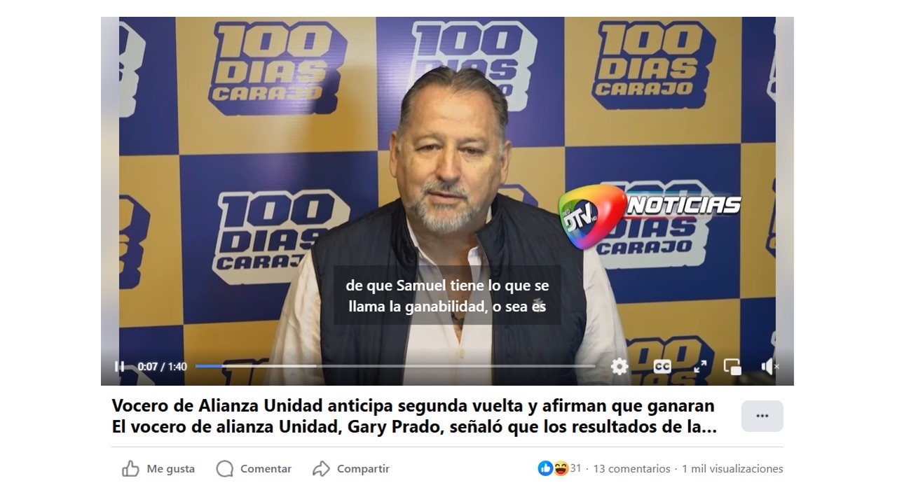 Vocero de Alianza Unidad anticipa segunda vuelta y afirman que ganaran