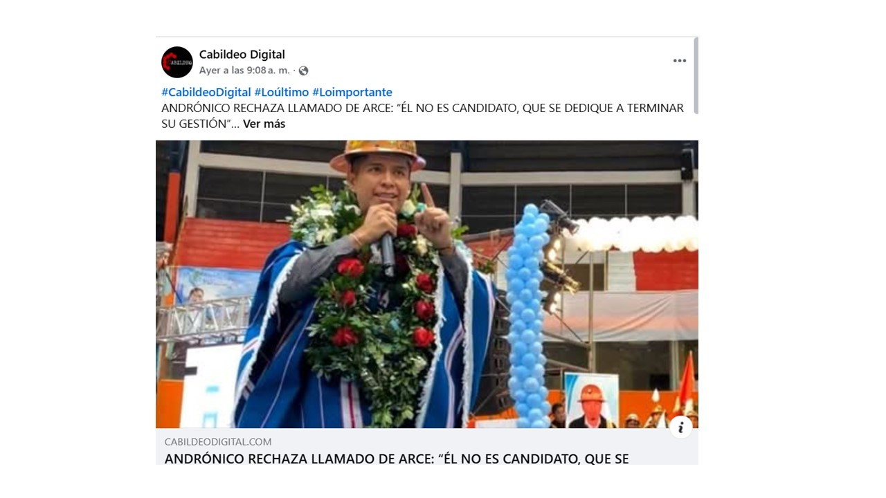 ANDRÓNICO RECHAZA LLAMADO DE ARCE: “ÉL NO ES CANDIDATO, QUE SE DEDIQUE A TERMINAR SU GESTIÓN”