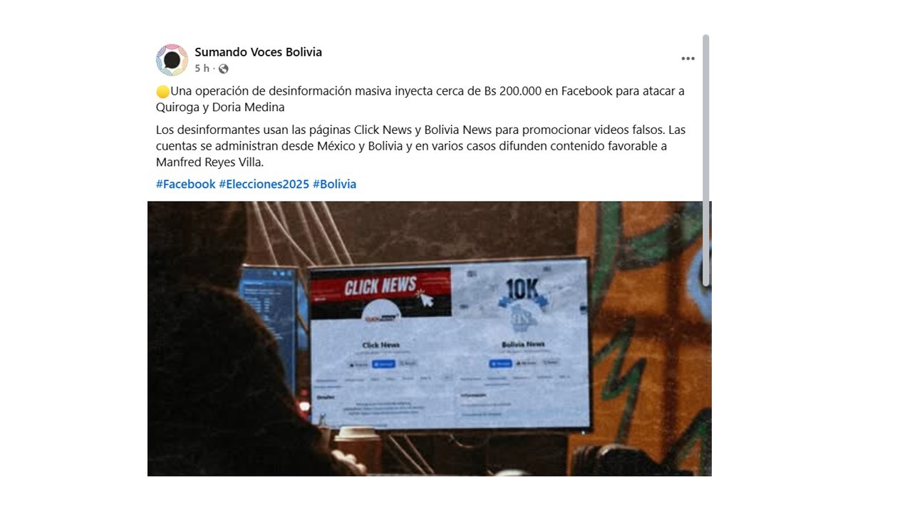 Una operación de desinformación masiva inyecta cerca de Bs 200.000 en Facebook para atacar a Quiroga y Doria Medina