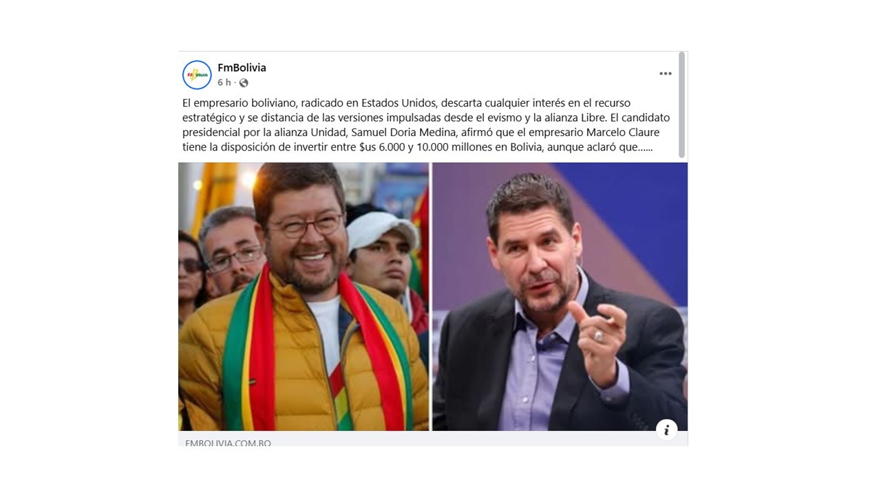 El empresario boliviano, radicado en Estados Unidos, descarta cualquier interés en el recurso estratégico y se distancia de las versiones impulsadas desde el evismo y la alianza Libre