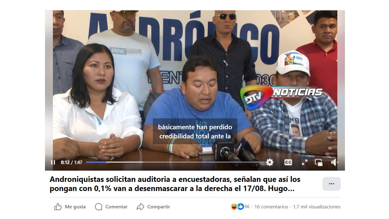 Androniquistas solicitan auditoria a encuestadoras, señalan que así los pongan con 0,1% van a desenmascarar a la derecha el 17/08.