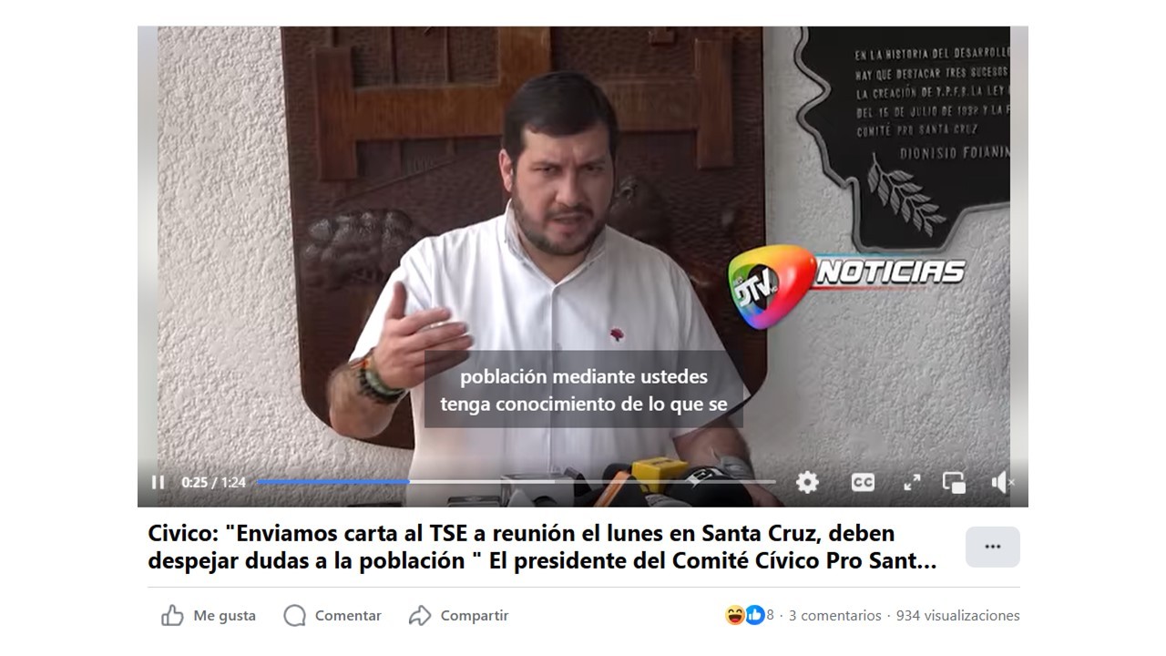 Civico: "Enviamos carta al TSE a reunión el lunes en Santa Cruz, deben despejar dudas a la población "