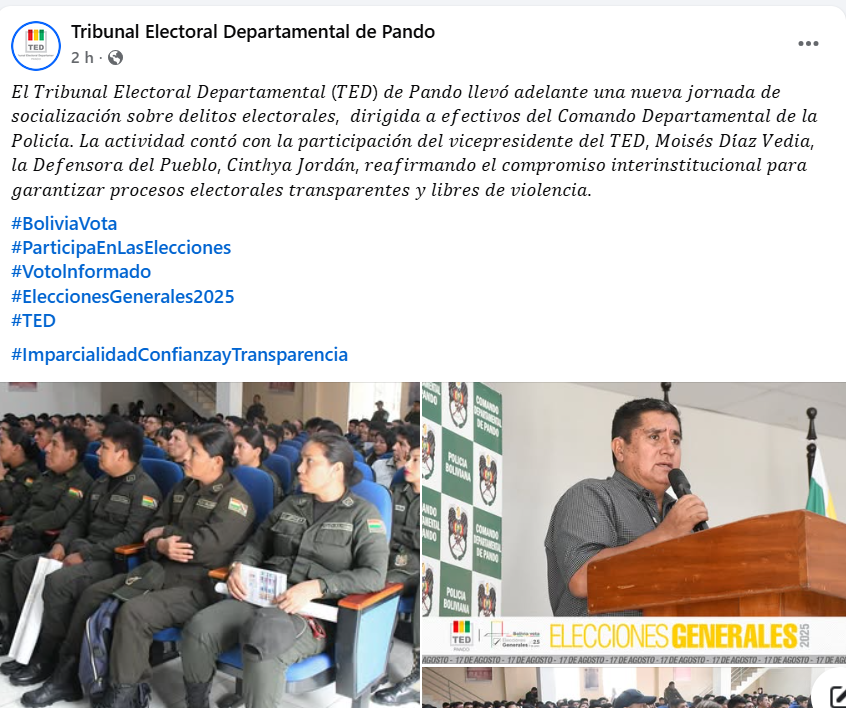 Delitos Electorales, socialización a efectivos del Comando Departamental de la Policía