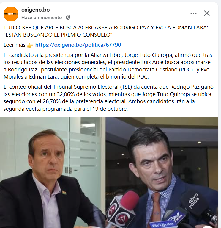 Tuto cree que arce busca acercarse a Rodrigo Paz y evo a Edman Lara: “están buscando el premio consuelo”