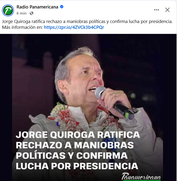 Jorge Quiroga ratifica rechazo a maniobras políticas y confirma lucha por presidencia