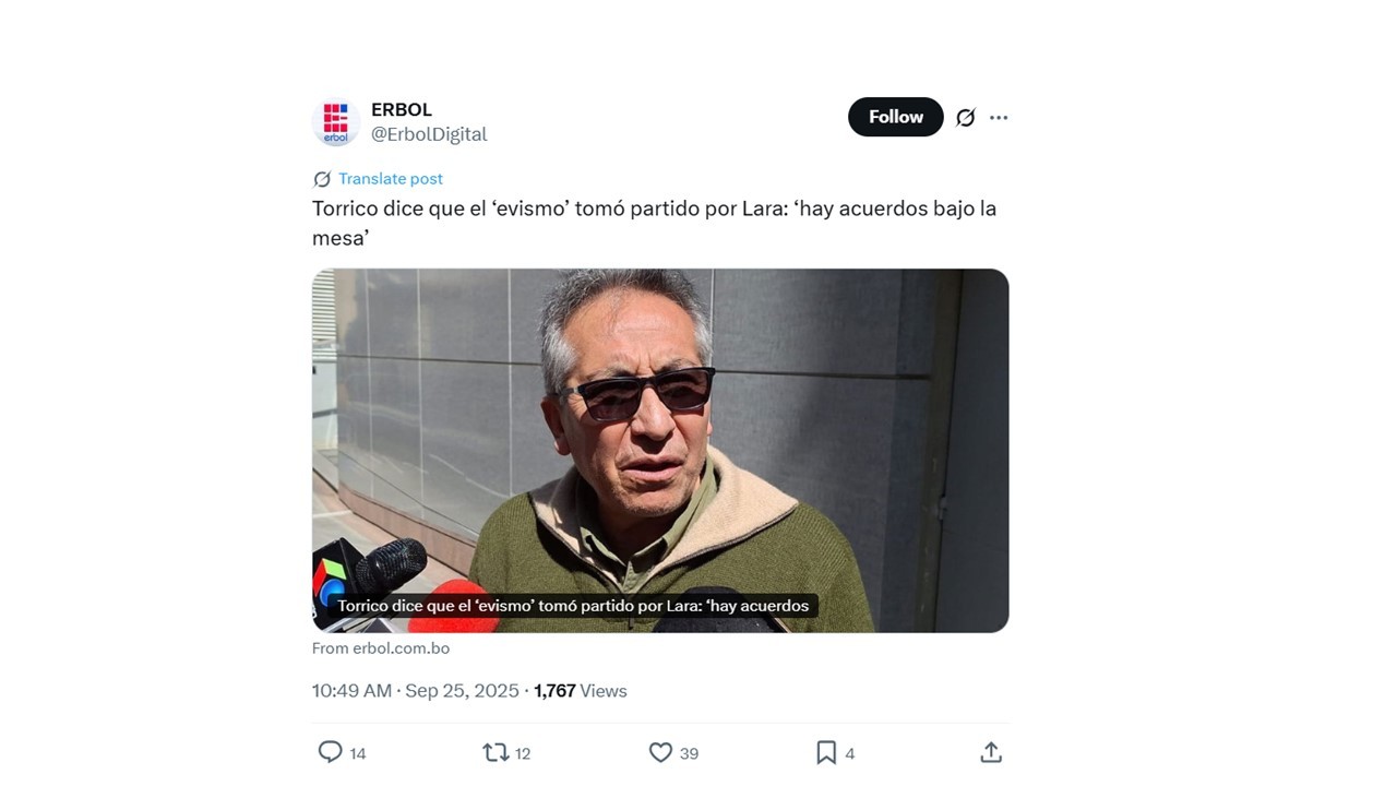 Torrico dice que el ‘evismo’ tomó partido por Lara: ‘hay acuerdos bajo la mesa’