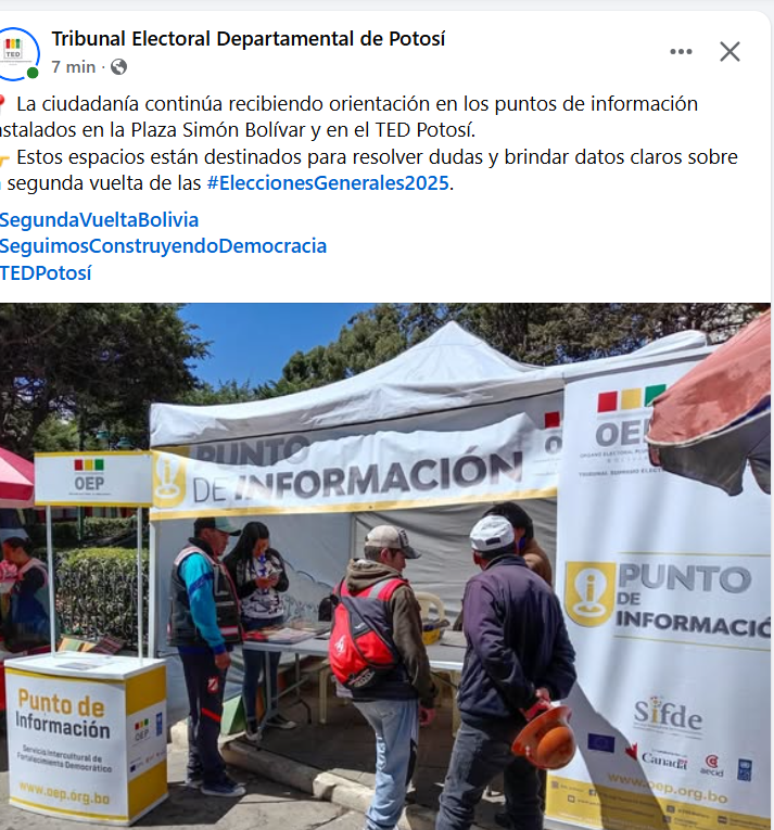 - EL POTOSI - El TSE dará los resultados a las 21:00 del domingo 22