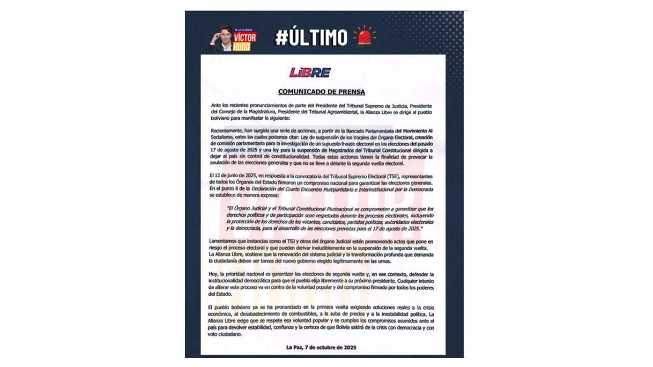 ALIANZA LIBRE DENUNCIA INTENTO DE ANULACIÓN DE ELECCIONES Y SUSPENSIÓN DEL BALOTAJE