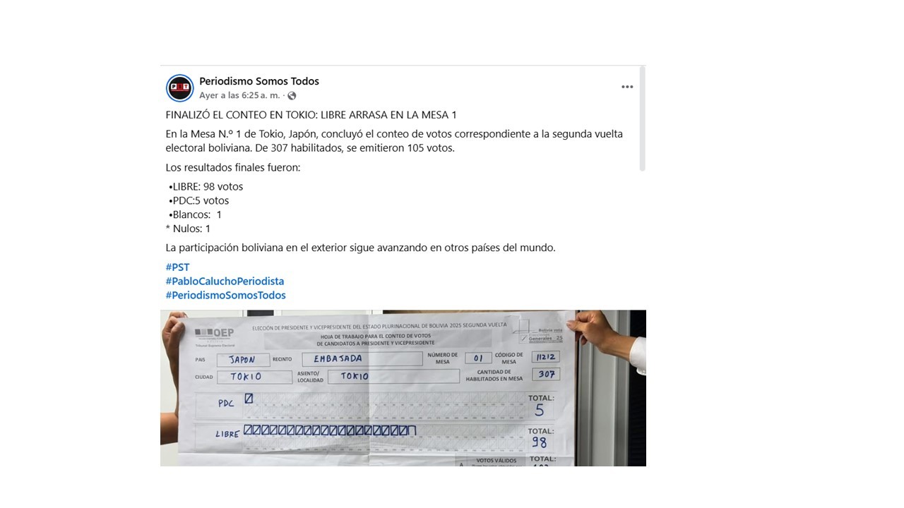 FINALIZÓ EL CONTEO EN TOKIO: LIBRE ARRASA EN LA MESA 1