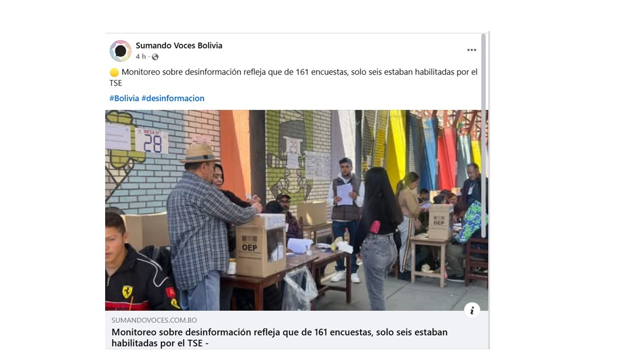 Monitoreo sobre desinformación refleja que de 161 encuestas, solo seis estaban habilitadas por el TSE